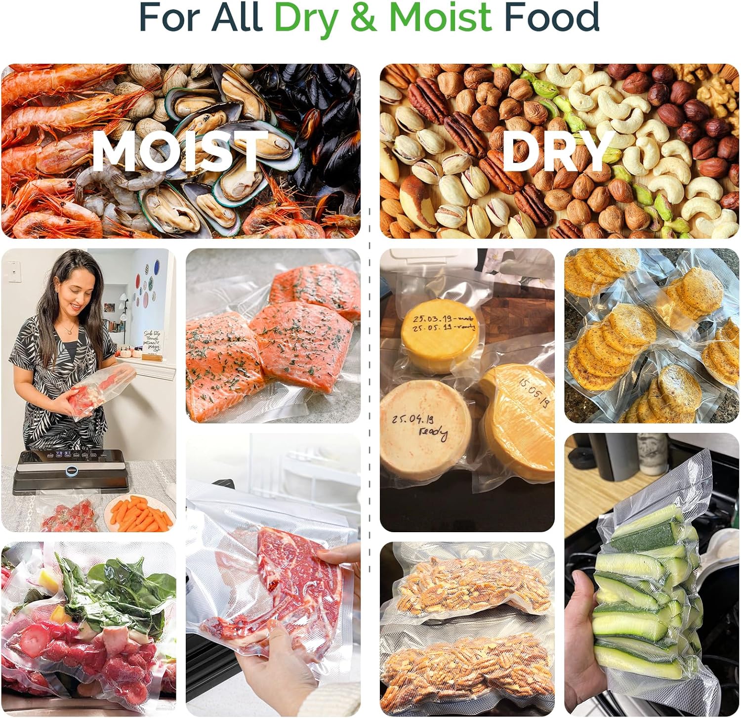 • 【Long Term Food Preservation】Vacuum roll bags are great for storing raw and cooked foods. These storage bags extend food shelf life 3-6 times longer, keep freshness, nutrition and flavor in your food. Eliminates freezer burn and dehydration, air and waterproof material prevents leaking, reduce spoilage and food waste