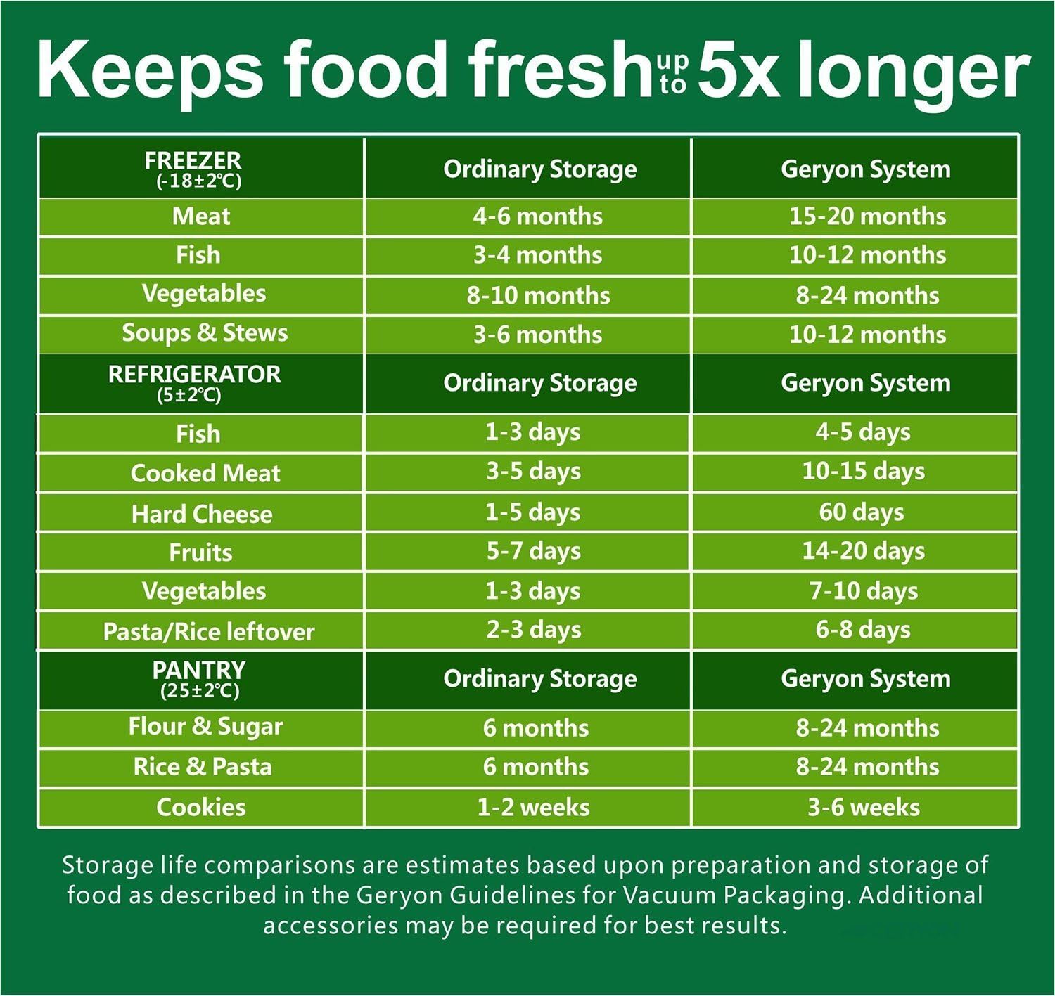 • 【Excellent Vacuum Effect】Geryon food vacuum sealer bags rolls have textured on both sides. Specially designed micro channels block both oxygen and moisture to maximize air removal largely. Embossed channels increase suction to vacuum and secure seal
