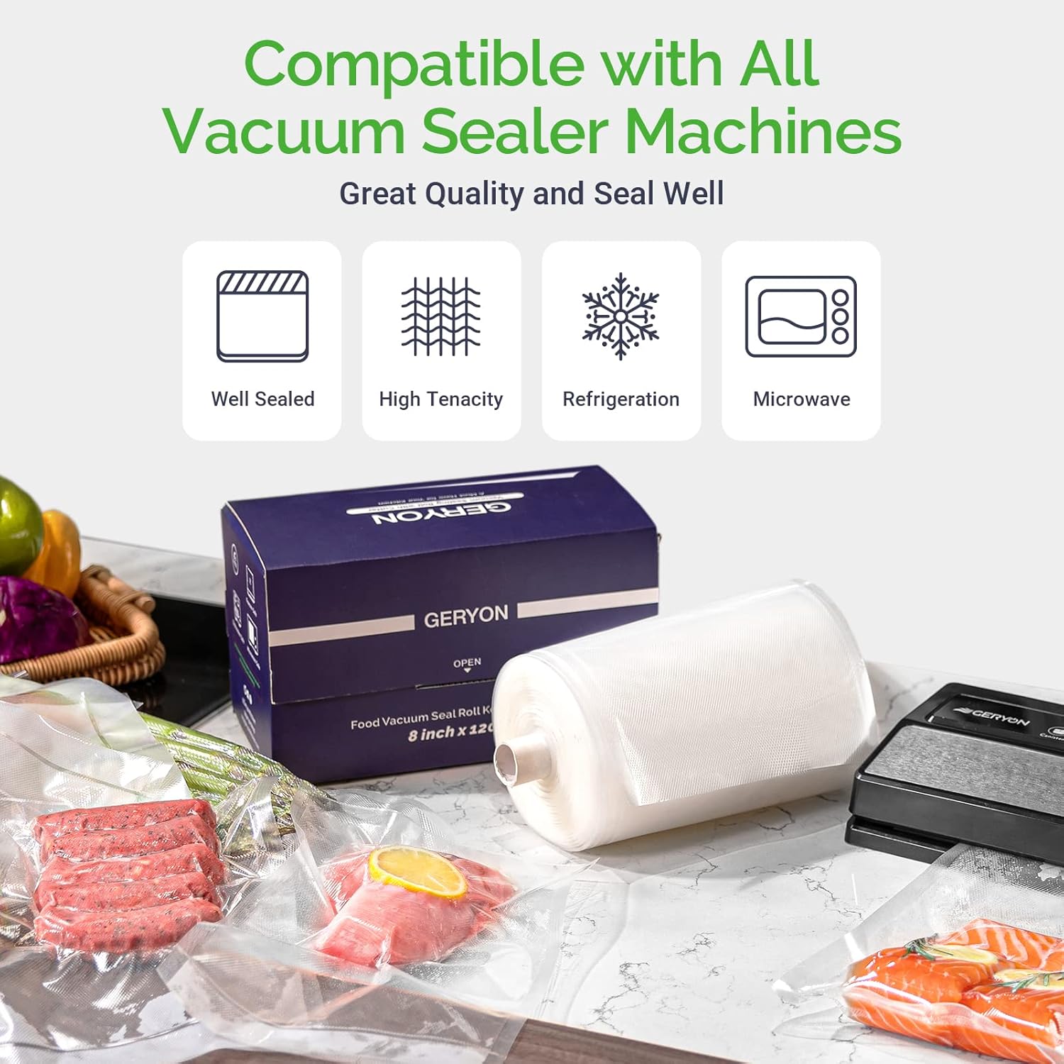GERYON Vacuum Sealer Bags for Food, 8x120ft Rolls with Slide Cutter for All Vacuum Sealer Machine, BPA-Free, Safe for Food Storage, Meal Prep and Sous Vide