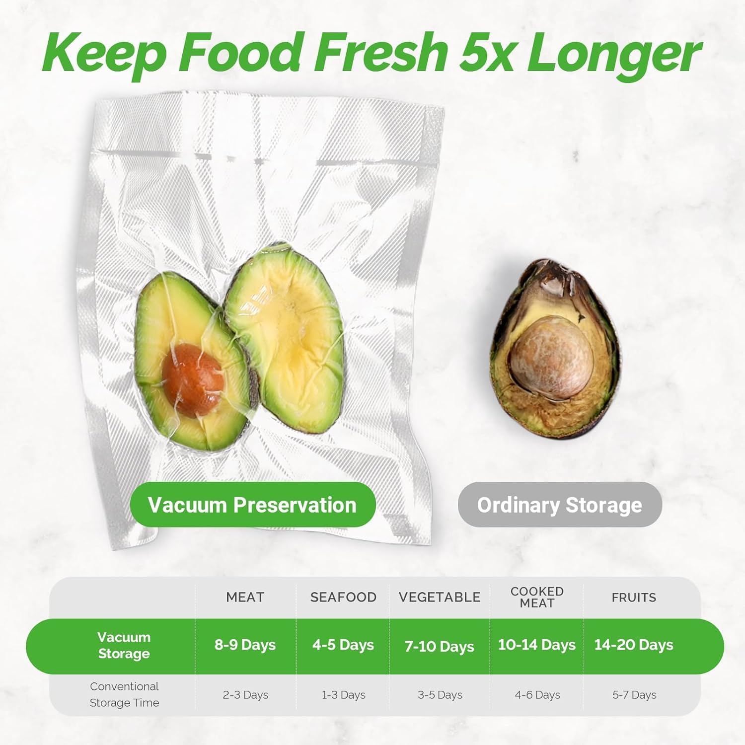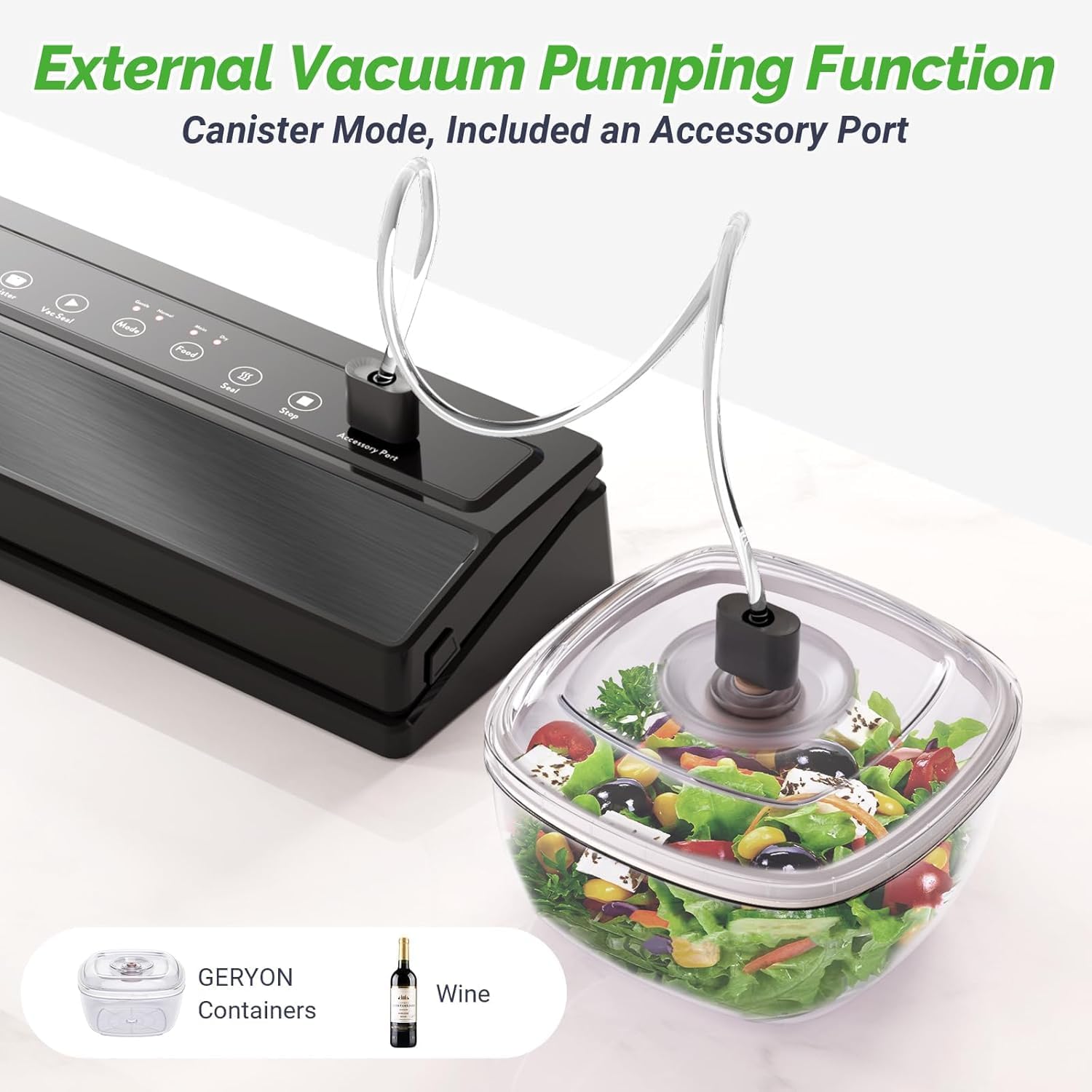 - Create a Airtight Seal: This beautiful and streamlined vacuum food sealer machine takes all of the struggles out of vacuum sealing, and has strong suction power and an automatic sealing setting that makes it super easy to use. Work with all 12'' width Geryon and other brand vacuum sealer bags and rolls with texture on one or both sides. With this food vacuum sealer, you can preserve fresh fruits and vegetables while they're still in season to enjoy in the off months
